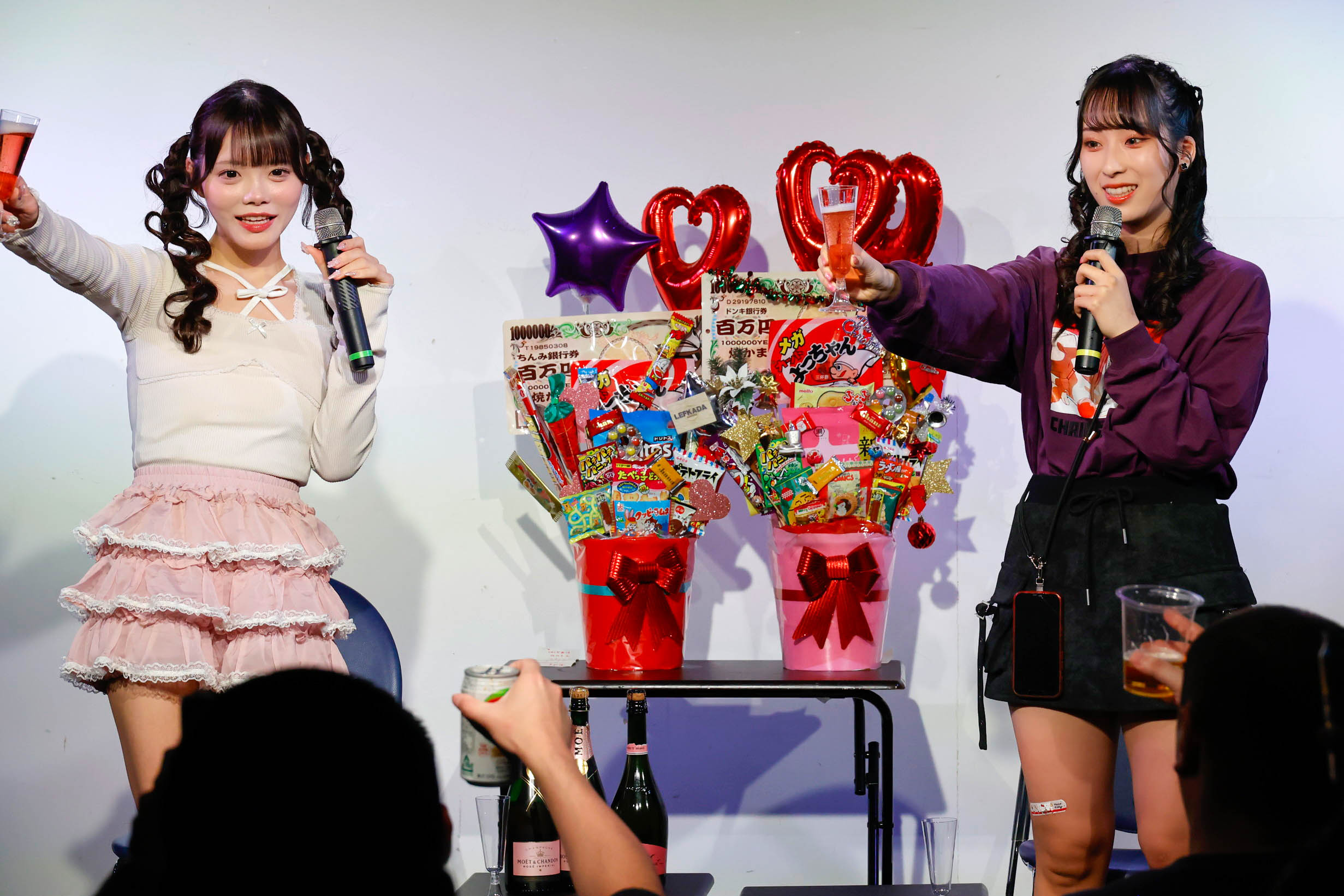 自己紹介が終わると、恒例の乾杯でイベントが本格的にスタート。イベント内でコスプレを着用するには、対決ゲームに勝利しなければならず、勝者だけがコスプレ姿で登場。さらに、ファンから無数のシャッターを浴びるという特典が付きます。