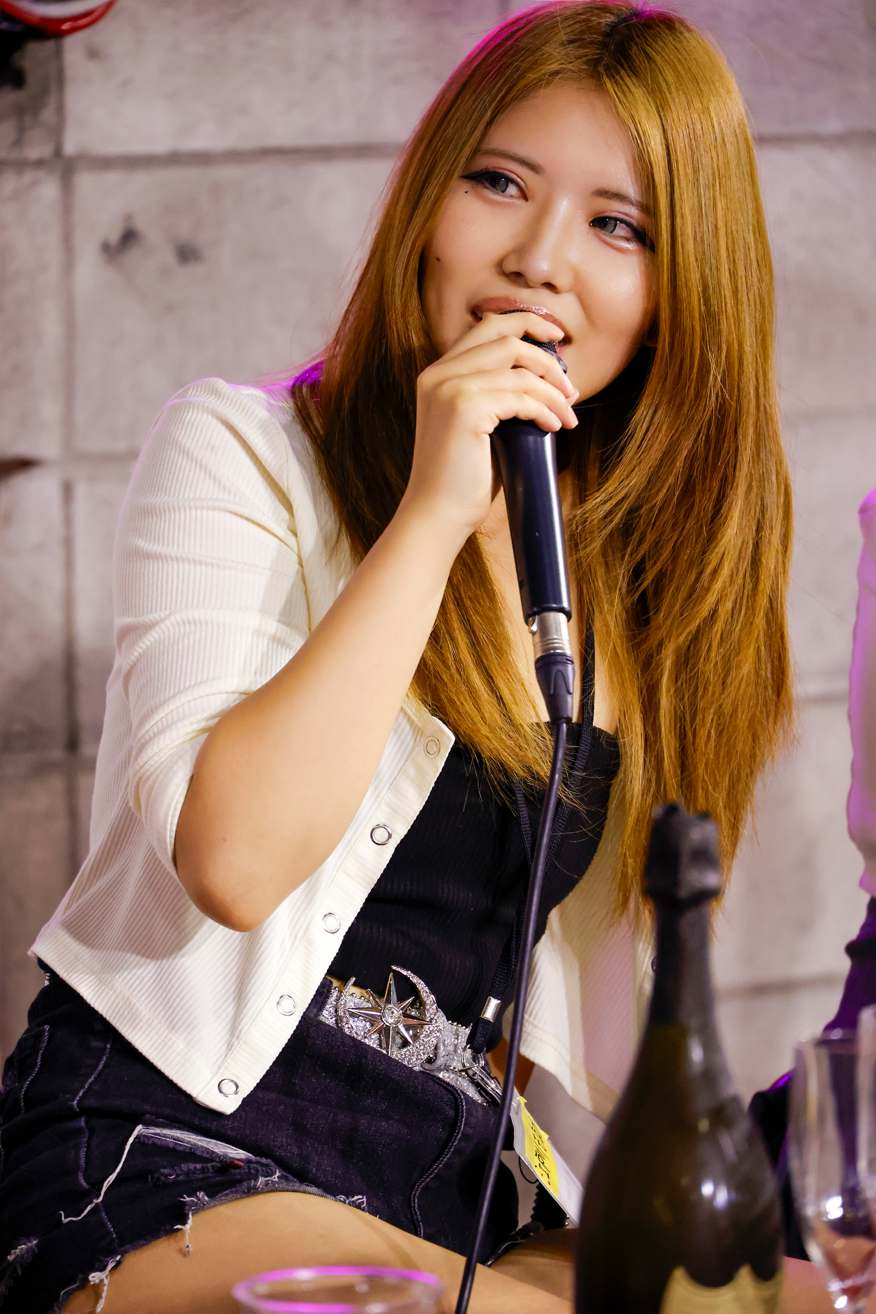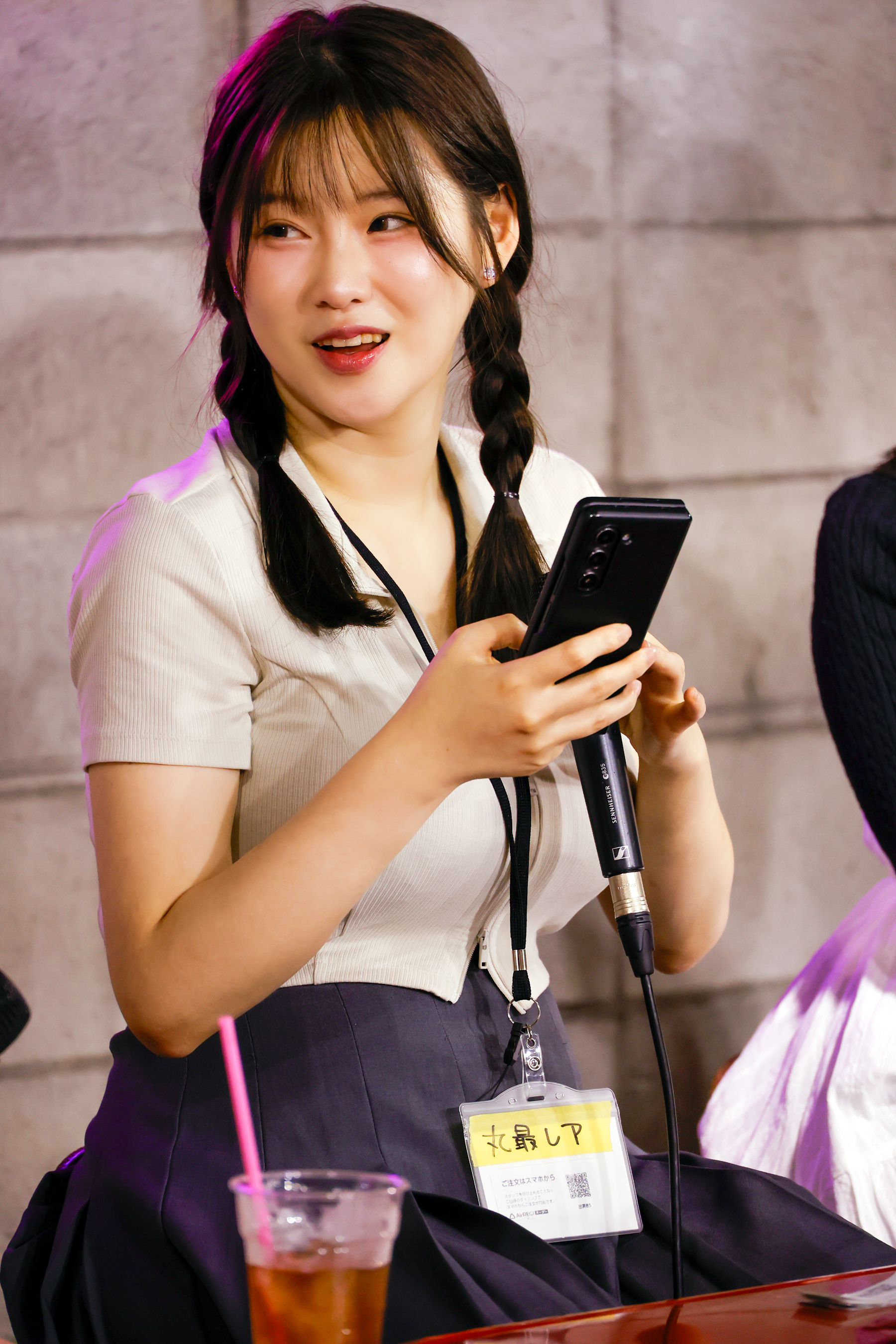 話題は「ナンパ」に移り、あゆみんパイセンとせいらちゃんは「チキンだからナンパなんて無理」と告白。ギャルの雰囲気でナンパが得意そうに見えるもなかちゃんも「マジでできない」ときっぱり否定し、会場は笑いに包まれました。ところが、美鈴ちゃんが意外なカミングアウト! 「〇〇BARには行くよ」と明かし、「エッチな目的じゃなくて、変な人と飲みたいだけ」という独特な理由に会場は驚愕。美鈴ちゃんの自由奔放な魅力が炸裂しました。