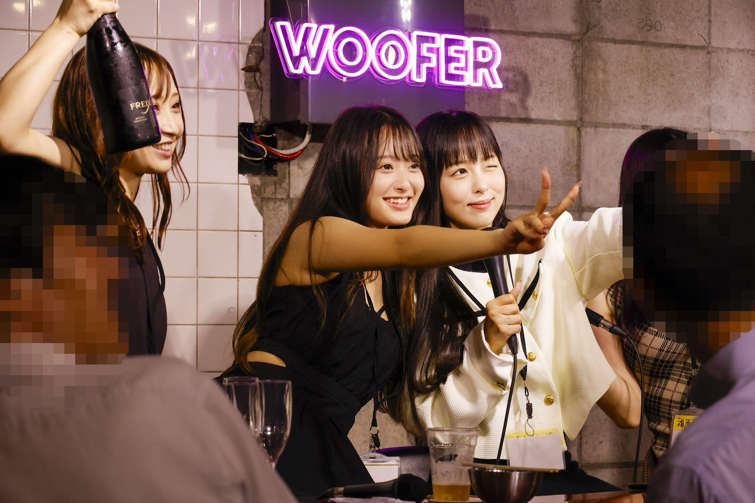 トークの合間にはシャンパンやテキーラが振る舞われ、5人で乾杯! ファンとの掛け合いも絶妙で、距離感ゼロの和気あいあいとした空気が会場を包みました。新人たちの初々しさと、あゆみんパイセンの愛情たっぷりのリードで、会場は笑顔と拍手に溢れました。