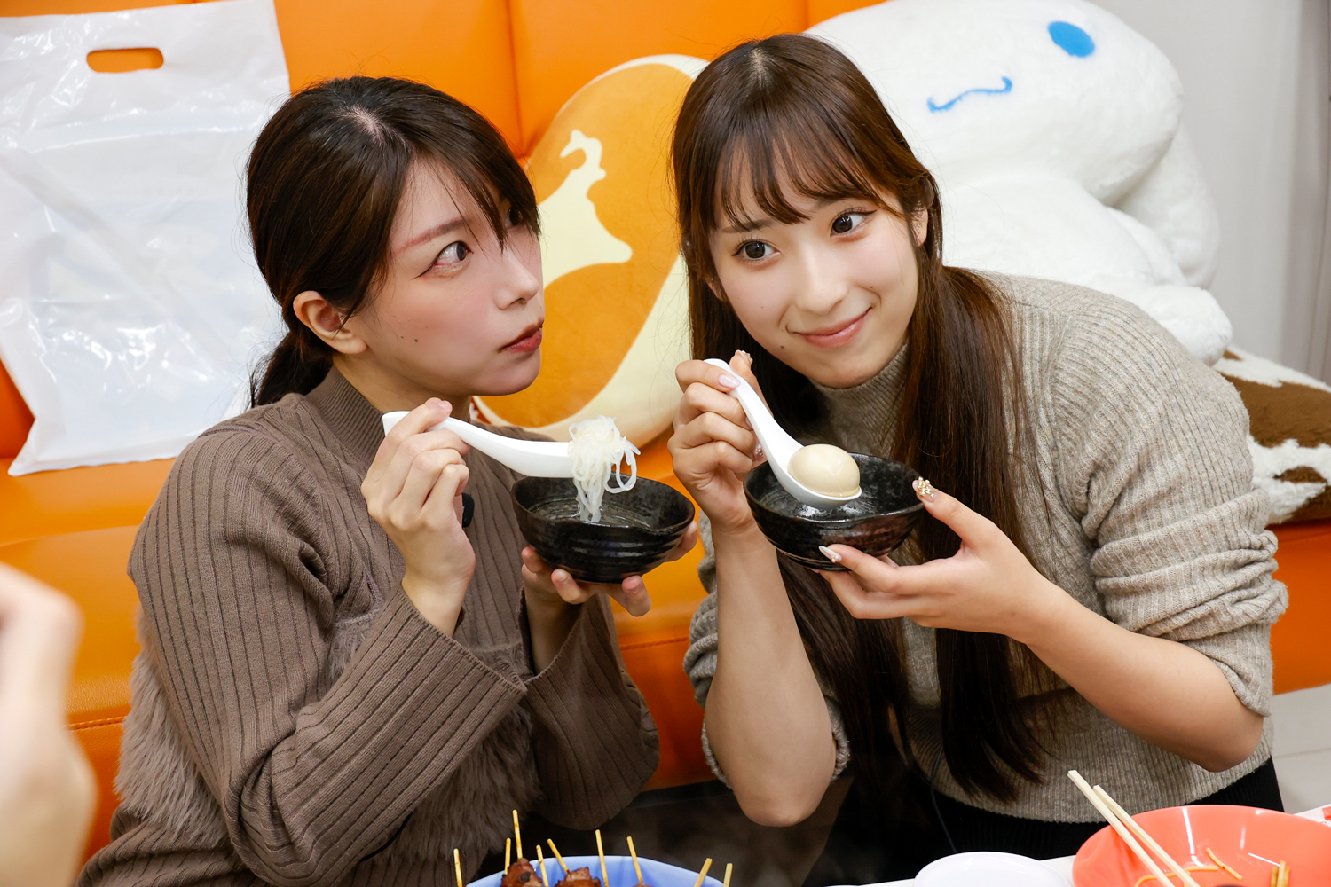 人気女優・みひな&真白みのりが熱々おでんにチャレンジ!悶絶するみひな、平気な顔で食す真白みのり!