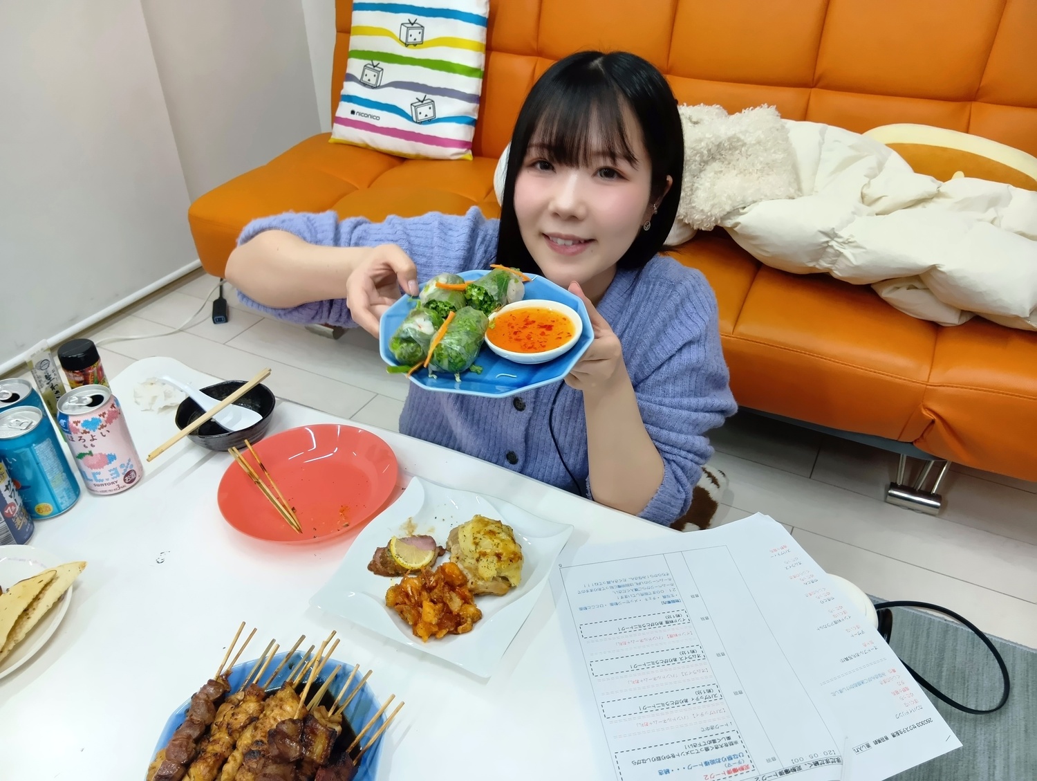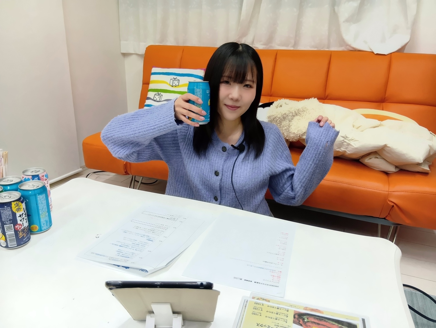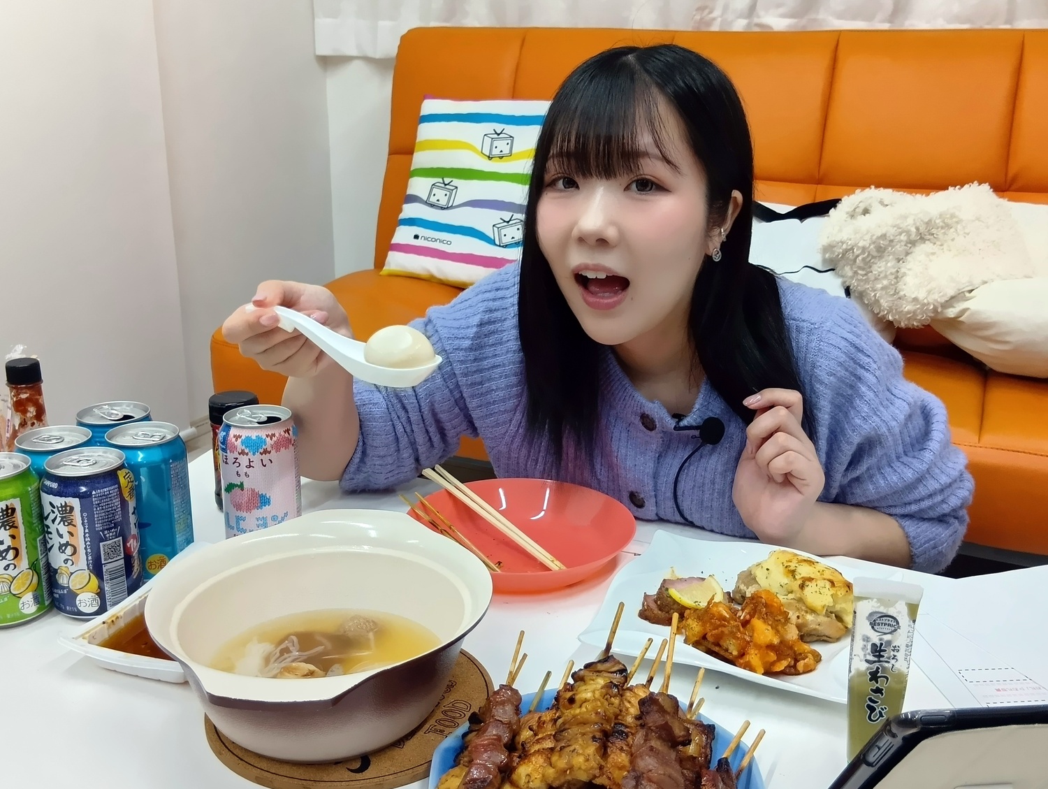 トーク中にもオードブルや焼き鳥など、お酒に合うおつまみが続々と視聴者から贈られ、喜ぶ美鈴ちゃん。