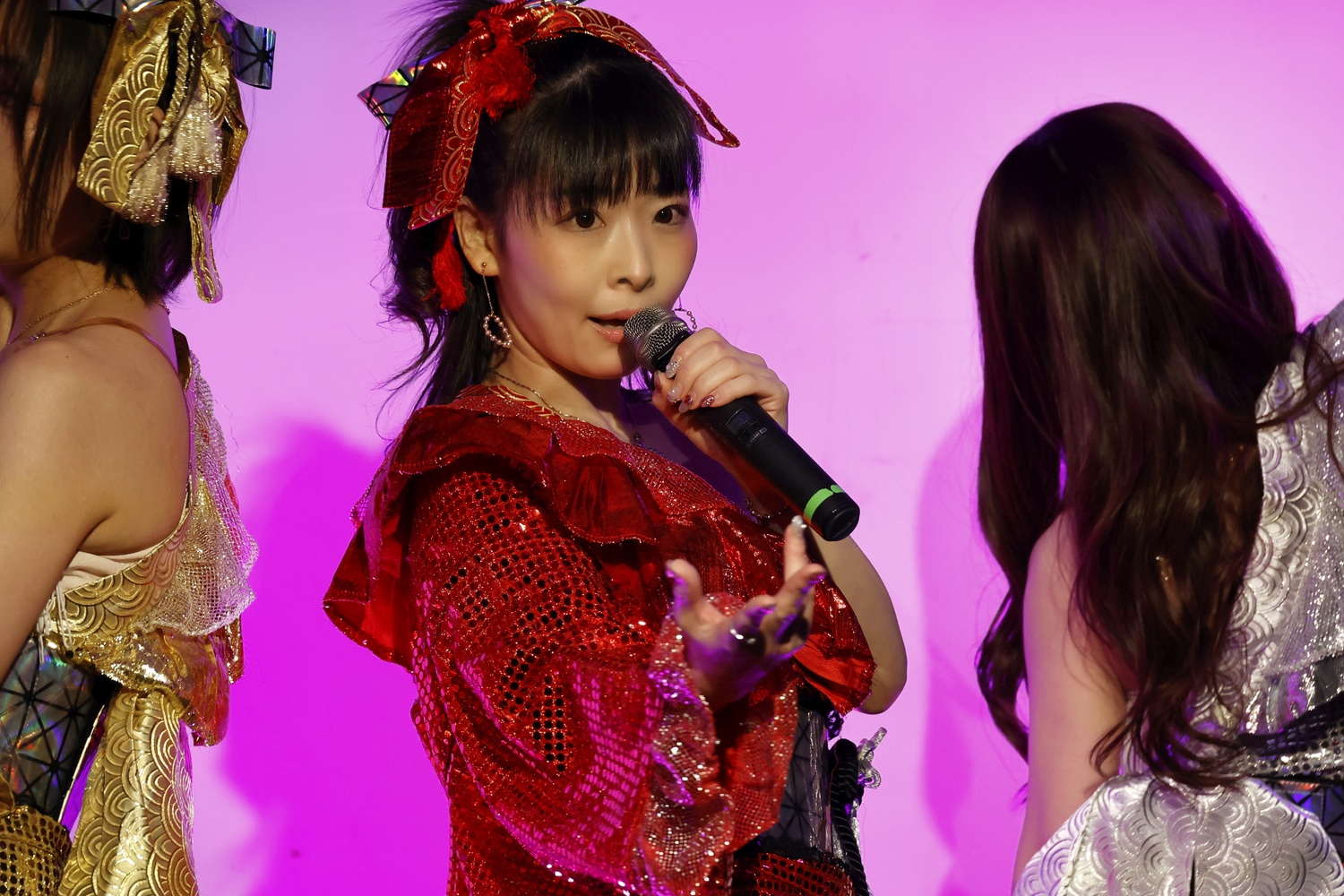 MCでは、2月のライブをストリップ劇場出演のため欠席していた美織ちゃんが「1か月ぶりに帰ってきました」と挨拶。劇場は連日大盛況だったそうで、「集中力を身に付け、パフォーマーとしてひと皮むけた」と手応えを語ります。その言葉通り、この日のパフォーマンスは一段とキレが増し、ステージ上で放たれる存在感もひときわ輝いていました。