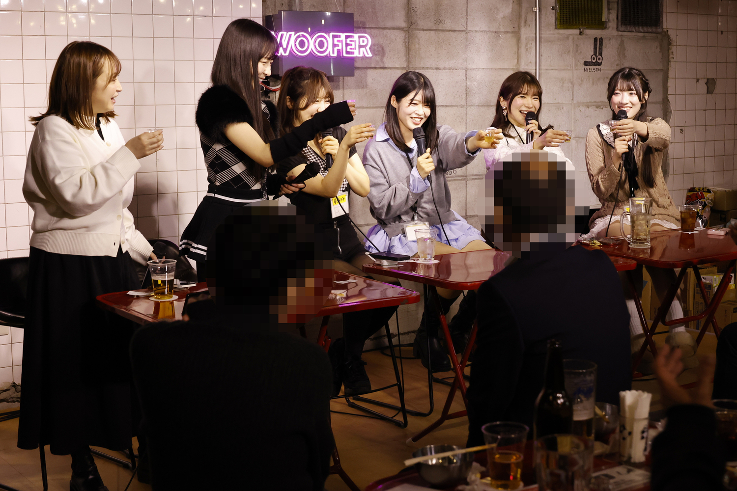 3月13日に東京・代々木の「A Talk Club WOOFER」で、大人気飲み会系イベント『マインズFRIDAY NIGHT』が開催されました。毎回、楽しいサブタイトルが付けられていますが、今回は「集まれファミリー!3.13春の乾杯祭」ということで、きみと歩実ちゃん(以下、あゆみんパイセン)・八森わか菜ちゃん・善場まみちゃん・浦上ひのりちゃん・RUUちゃん・本城はなちゃんと、お馴染みのメンバーが勢揃いしました。